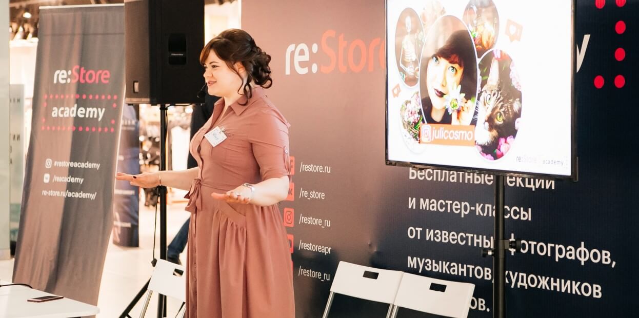 Академия re:Store – образовательный проект, расширяющий взгляд потребителя на технику Apple. Это проект для тех, кто стремится создавать и творить, смотря на мир через объектив камеры iPhone, через экран MacBook и iPad.