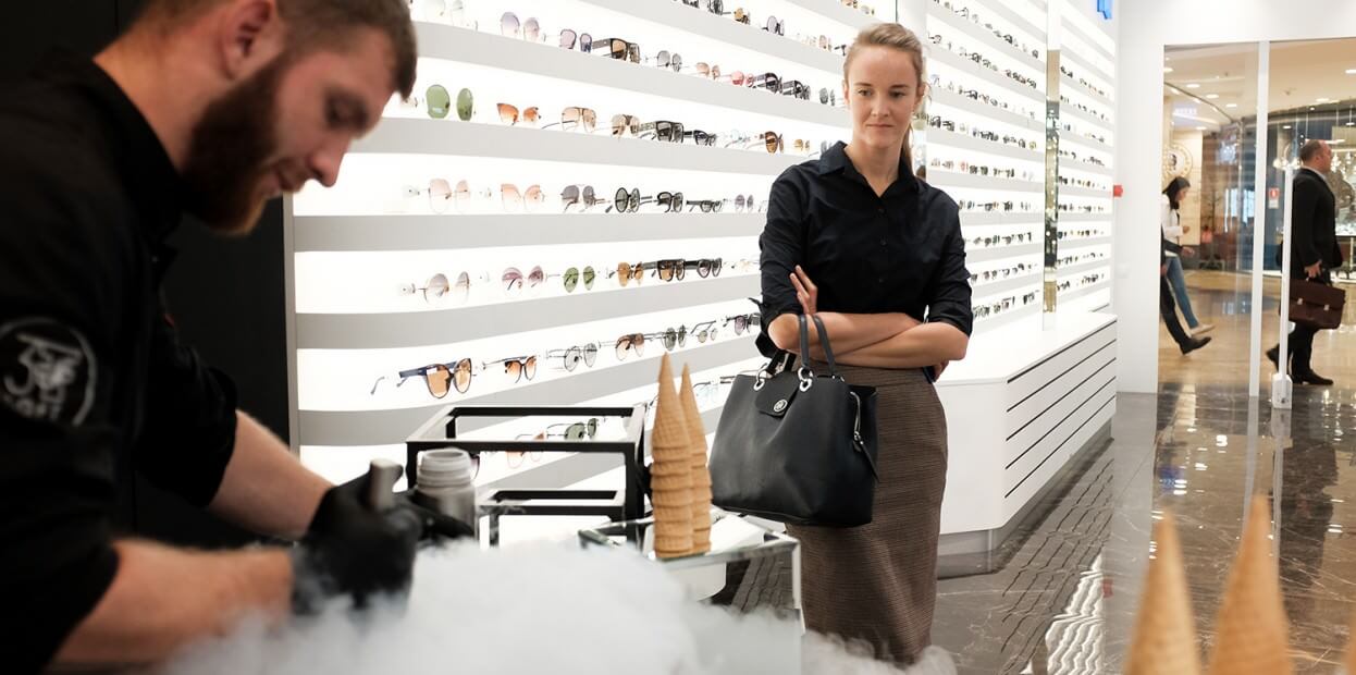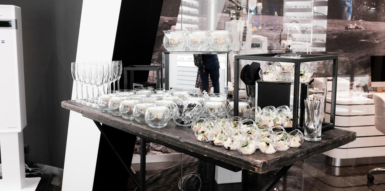 Оригинальная концепция мероприятия: сломать стереотипы привычного. Презентация инновационных технологий коррекции зрения, аналогов которых нет в мире; в качестве фуршета — изысканная молекулярная кухня, предлагающая разнообразные вкусовые ощущения;