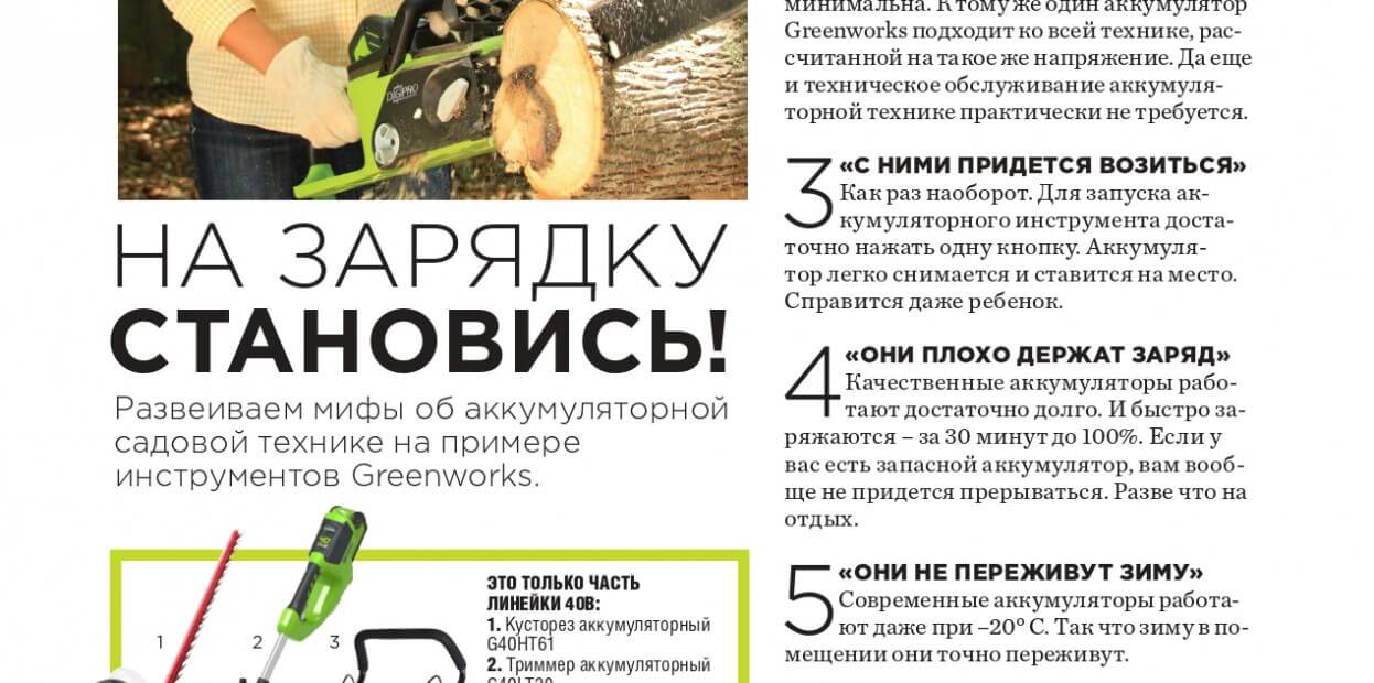 Greenworks – лидирующий на рынке бренд садовой аккумуляторной техники. Выделяется широким модельным рядом инновационных продуктов как для любителей, так и для профессионалов. В рамках каждой линейки все продукты могут работать от единого универсального аккумулятора.